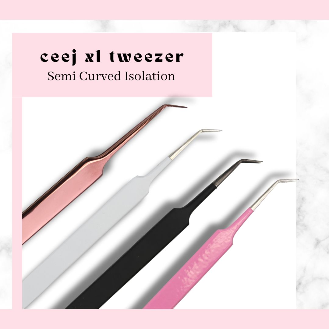 CEEJ XL (pronounced /s-EE-j/) Curved Isolation tweezer makes all the difference for easy isolation! Ceej, your favorite semi curved iso is 12cm and the Ceej XL is 14 cm. However, the angle is the same and the tip of the length (1.7 cm). Makes separating the lashes a breeze, especially for those who love long isolation tweezers!
