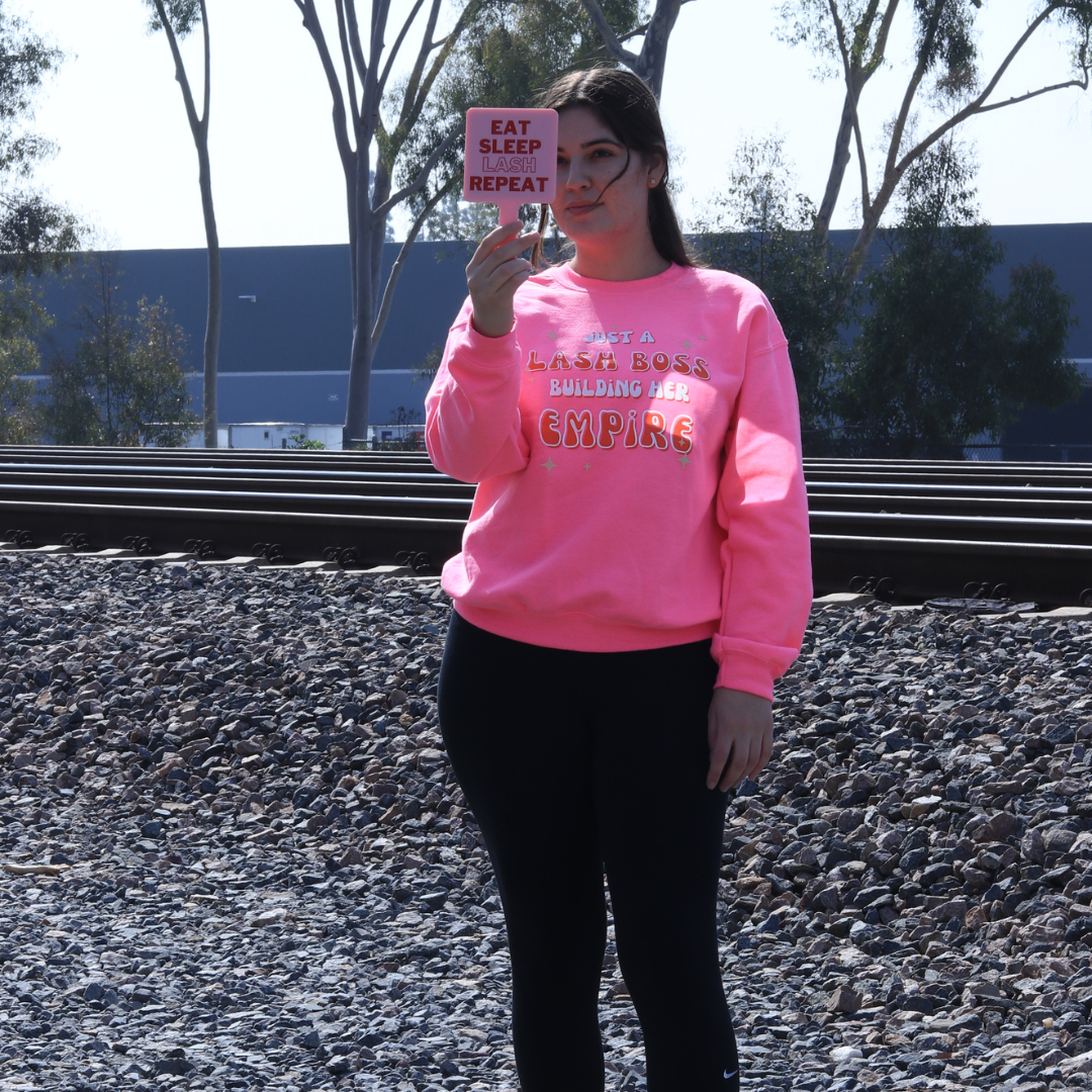 Our Lash Boss crewneck sweater is Perfect to keep warm while promoting your business. Our crewnecks have fleece interior but are super light-weight. Go one size higher for an oversized sweater look!